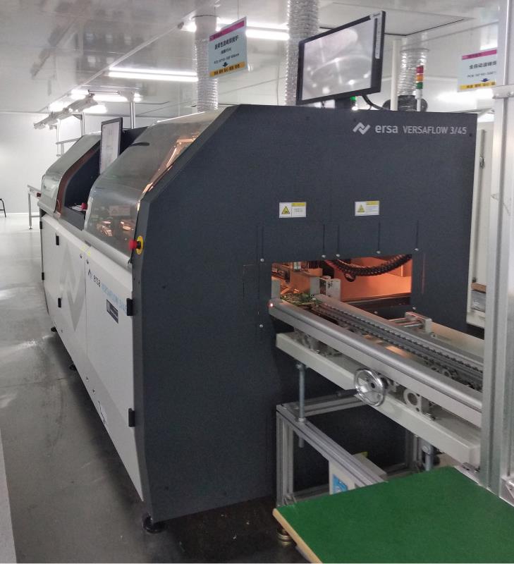 小銘打樣選擇性波峰焊正式投入使用----中國首家引進德國ERSA,助力高端產品焊接可靠性PCBA上插件器件的焊接,常規使用手工焊接或傳統自動波峰焊接,涉及避讓已貼片的SMT材料和部分不用上錫的過孔而需要專門訂制焊接治具,相應導致額外的治具成本、錫面增加致耗錫量增加、能耗高、污染嚴重等,尤其是制作治具需要必要的時間難以滿足小銘打樣之多品種小批量生產等問題,為了更好地履行時效+品質承諾,特別是滿足如汽車、航空、航天和軍工類高端產品的焊接需求,銘華航電于2018年7月引進了當今世界最先進的選擇性波峰焊--德國產